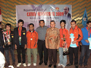 Piala-piala tetap yang telah disediakan oleh Mendiknas bagi juara 1 s/d 3 setiap nomor, selain uang tunai/pembinaan yang totalnya Rp 137 juta, terbagi untuk 4 nomor yang dipertandingkan, yaitu Catur Beregu Putra (total hadiah uang Rp 40 juta bagi 10 regu peringkat teratas), Catur Beregu Putri (total hadiah uang disamakan dengan nomor beregu putra untuk menghindari “demo mahasiswi” dengan isyu emansipasi), Catur Perorangan Putra (total hadiah uang Rp 28,5 juta bagi 20 peserta peringkat teratas), dan Catur Perorangan Putri (total hadiah uang sama dengan nomor perorangan putra). Format yang digunakan adalah Catur Standar 90 menit + increment (bonus waktu berpikir) 30 detik untuk setiap langkah sejak langkah pertama (bagi peserta yang menggunakan jam catur digital), atau Catur Standar dengan kontrol waktu pertama 1 jam = 20 langkah, dilanjutkan kontrol waktu berikutnya 1 jam sampai dengan selesai (bagi peserta yang menggunakan jam catur manual/konvensional). Sistem pertandingan adalah sistem Swiss 9 babak (setiap regu/peserta akan bertanding sebanyak 9 kali dengan lawan-lawan yang berbeda)… Kalau yang memegang mic itu bukan piala, juga tidak untuk dibagikan, karena itu kan Rieke Dyah “Oneng” Pitaloka saat memandu acara pembukaan Kejurnas Catur Mahasiswa Tahun 2009…