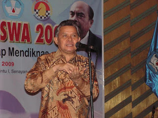MENDIKNAS Prof Dr Bambang Sudibyo MBA memberikan kata sambutan di acara pembukaan Kejurnas Catur Mahasiswa Tahun 2009 hari Sabtu tanggal 20 Juni 2009 yang berlangsung di Auditorium D Lantai 2 Gedung DIKTI Depdiknas, Pintu 1 Senayan Jakarta. “Depdiknas akan terus mendukung kemajuan olahraga Indonesia – salah satunya cabang olahraga Catur – agar bisa disegani di tingkat ASEAN, lalu di tingkat Asia, dan akhirnya di tingkat Dunia…!”