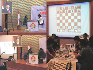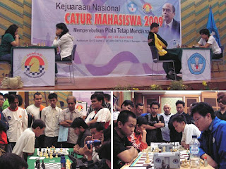 Yang mendapat kehormatan untuk bertanding di panggung adalah meja teratas nomor perorangan putra dan putri, menggunakan papan catur elektronik yang langsung dipantulkan melalui infocus ke layar lebar. Tampak di foto adalah babak ke-3 nomor perorangan putri Grandmaster Wanita (GMW) pertama Indonesia Irene Kharisma Sukandar (membawa bendera Universitas Gunadarma) berhadapan dengan Master Nasional Wanita (MNW) Norasya Verdiana (dari Universitas Pancasila Jakarta) yang dimenangkan oleh Irene. Sementara di nomor perorangan putra Grandmaster Susanto Megaranto (membawa bendera Universitas Gunadarma) berhadapan dengan Roy Charles (dari STMIK Mikroskill Medan) yang dimenangkan oleh Susanto.